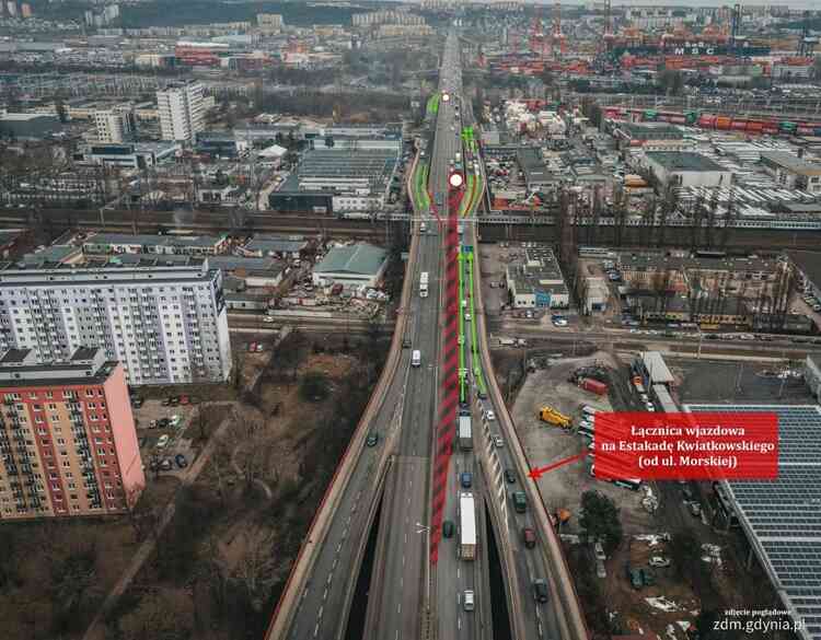 Planowana jest likwidacja odcinka buspasa na ul. Morskiej (za estakadą w kierunku Chyloni). Dla kierowców zjeżdżających z estakady ważne jest to, że skręcający w prawo zyskają pas włączenia, który ma ułatwić płynniejsze wpięcie się do ruchu przy sygnale S-2 (tzw. zielonej strzałce). Rozwiązanie ma pomóc w rozładowaniu kolejek tworzących się na łącznicy i – co istotne – ma pozostać na stałe, także po zakończeniu remontu.